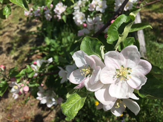 りんごの花は終わってしまいましたが、ブルーベリーが今はかわいく咲いています。