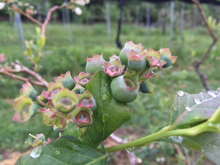 ブルーベリーも同じく、受粉が済んで小さな実が出来ています。