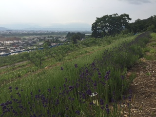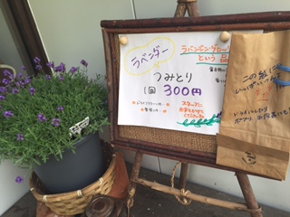 mi cafeのお店の通路には、ラベンダーがたくさん植えられています。