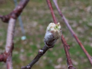 冬にギュッと結ばれていた固い芽が、少しほころんで中の小さな葉っぱが見えてきました!!