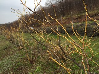 秋に赤くなっていた枝がどんどん黄色っぽくなって、沢山の芽をつけています。。。