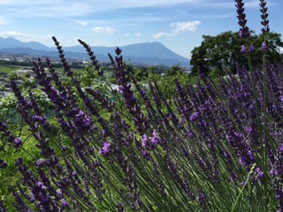 畑に目をやると、ラベンダーの花が紫色の波のようにそよぎます。