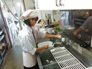 カフェの中では、朝の開店準備の掃除から、接客、食器洗いまで頑張りました。
