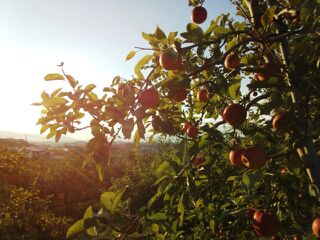 少しずつ、葉っぱの色が黄色く変わり始めたりんごの木もあって、眩しい光から、優しい光へ移ってきているのがわかります。
