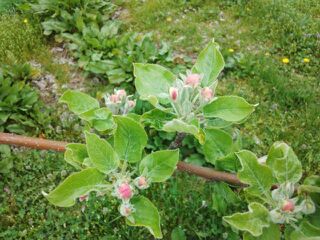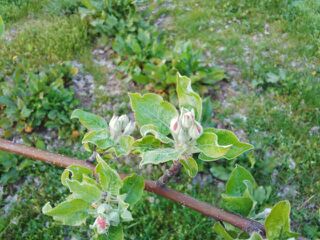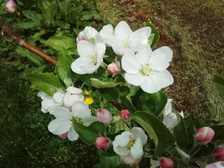 メインとなるりんごよりも早めに開いてくれた受粉樹の花々。
