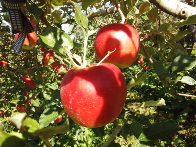 畑のりんごも真っ赤に色付いて、お店から眺める木々にはたわわにりんごが実っています。