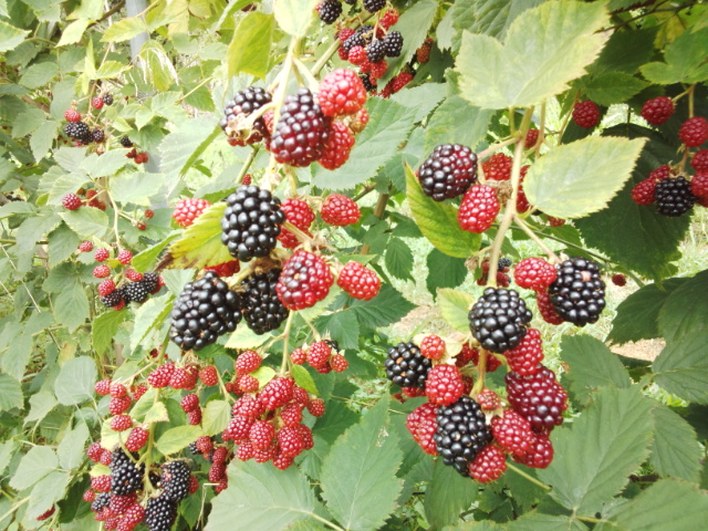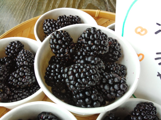 駐車場からお店までの通路脇に植えてあるブラックベリーも食べごろ!!