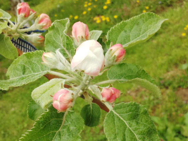 りんごの花の咲き始めは、まだ霜の被害が心配される事もあって、もし全部咲いてしまって霜にやられてしまったら、りんごがならなくなってしまうので、時をずらして咲くのだそうです。。。