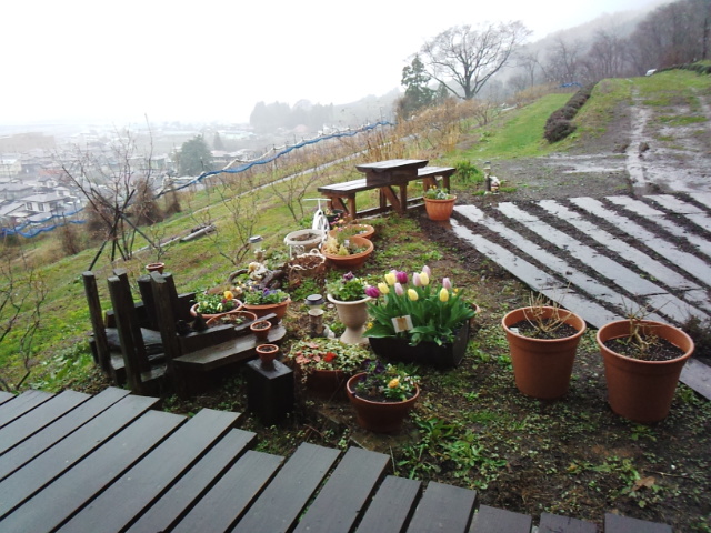 (先日、花粉に負けないように完全防備をして、寄せ植えしたプランターを飾りました
