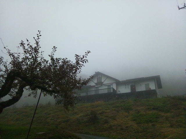 お店に到着した時間、雨は小降りだったのですが、霧でいつもの景色とは全然違いました。。。