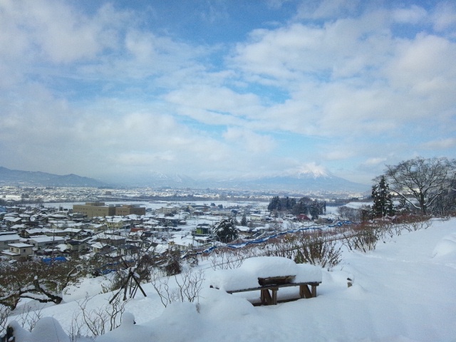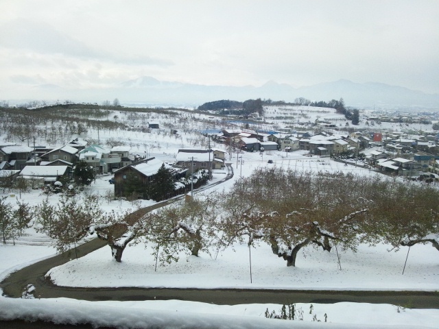 mi cafeまでの上り坂、オーナーのとっちゃさんが朝早くに除雪してくださるので、雪は解けて道路が見えています。