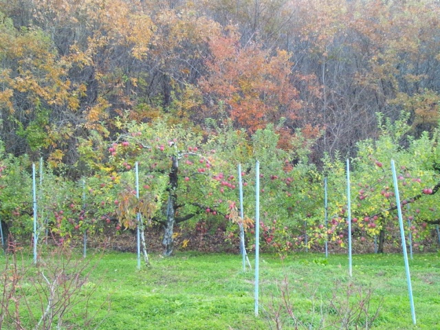 畑にぽつぽつ見えていた赤いりんごも、収穫が進んであと少し。。。