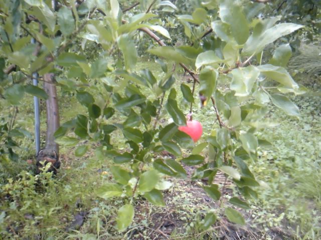 りんごは朝夕の気温差で色付きが進みますから、遅れが少し気になってきました。