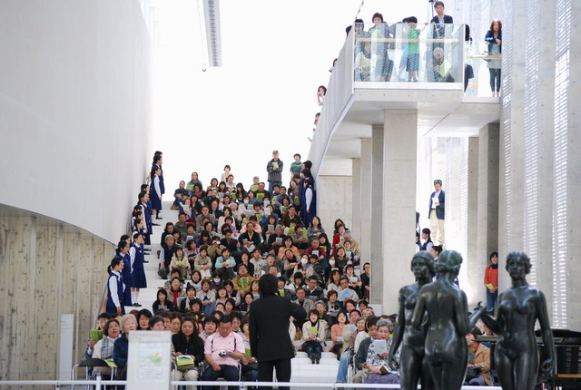 春の陽ざしが明るく優しい15日の日曜日、県立美術館いっぱいに不来方高校音楽部の合唱と、太田代将孝さんのクラシックな独唱。。。
