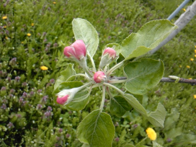 よくよく見ますと、りんごは種類によって花の色も違います。